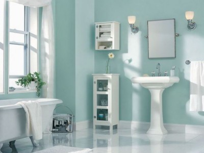Tông màu xanh lục nhạt đã tạo nên không gian phòng tắm một sắc màu thanh thoát, dễ chịu, cảm giác như một khối ngọc bích dịu nhẹ đang hướng lên đón ánh bình minh
